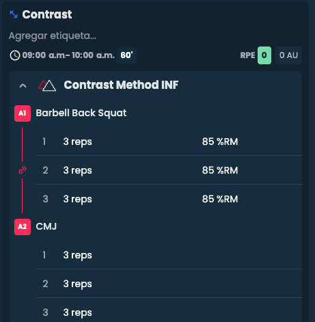 • El número de contrastes por sesión suele estar entre 3 y 5, dependiendo del nivel del atleta y del objetivo de la fase.