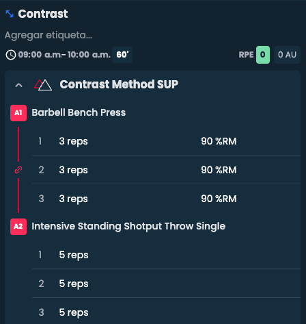 A diferencia del Complex Training, donde todo el bloque de fuerza precede al bloque de potencia, aquí cada pareja de ejercicios actúa como una unidad de estimulación independiente.