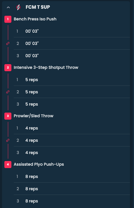 Este enfoque representa una síntesis entre el Complex Training y el Contrast Training, con la particularidad de que combina cuatro estímulos consecutivos dentro de una misma secuencia, buscando estimular distintos puntos de la curva fuerza-velocidad en una única intervención.